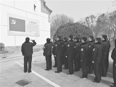 2月20日,武强县公安局组织全体党员开展廉政警示教育暨重温入党誓词活动,使广大党员民警自觉增强“四个意识”,坚定“四个自信”,做到“两个维护”,推动“不敢腐、不能腐、不想腐”一体化建设。图为党员民警重温入党誓词。