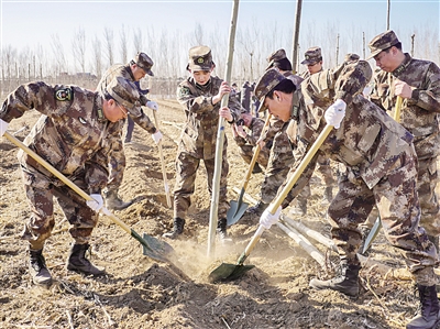 3月12日,陆军军医大学士官学校组织百余名官兵赴石家庄栾城区张家庄村,开展义务植树活动,栽下一片绿色的希望。