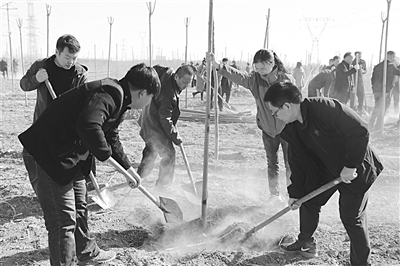 石家庄高新区人民检察院于3月12日植树节当天组织干警到辖区宋北村植树造林点参加义务植树活动,进一步提高大家保护环境的意识,为初春的大地增添一抹新绿。
