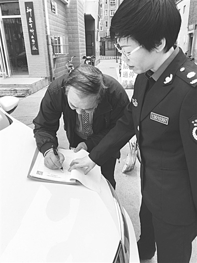 石家庄市城市排水监测站积极开展 “万名城管问效能”专题问计活动。连日来,工作人员深入辖区商场、物业及居民小区,向上千家排水户发放调查问卷,征询群众对排水监测工作的意见和建议。图为3月20日,工作人员来到位于兴凯路上的一个小区,向群众发放调查问卷。