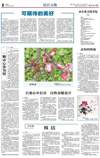 一生为了心爱的审判事业奉上一季季阳春三月,始终保持对生活的热忱和对大自然的敬畏,仪式感常在,善良亦常在,暖春亦常在,正义自然亦就会像年复一年、准时报到的阳春三月一样,永不缺席!为此,您坚信:只要心中有景,自当春暖花开!只要心中有景,正义之花亦会常开不败!