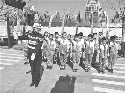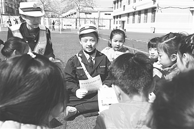 图③唐山市公安交警支队一大队民警走进唐山市文北小学开展“我是交通安全小教员”主题活动,为同学们普及安全出行、自我保护常识。 本报记者 刘文利 摄