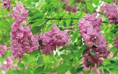 还有一种紫槐花,被人们称为“红花刺槐”或“毛刺槐”,花为红色或淡紫色,在绿叶的相衬下格外妖娆。紫红的花一团团、一簇簇,热烈又奔放,给人一种既不富丽又不张扬的感觉,身着一袭紫色的华衫,韵味十足,芬芳倾城。