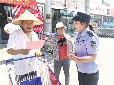 自“亮剑2019”打击整治专项行动开展以来,香河县公安局新华街道派出所紧紧围绕“人、物、场所”等治安要素,多线发力、多措并举,加大普法宣传力度,积极排查治安隐患,严厉打击各类违法犯罪活动。行动中,该所以黄赌毒、涉枪涉爆、街头违法犯罪等为打击重点,对不法分子露头就打。图为民警在街头进行法治宣传。 张洎 摄