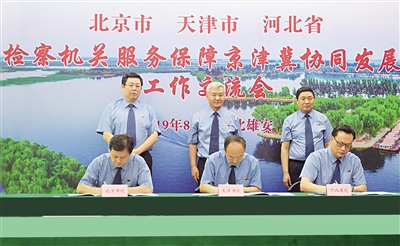 本报讯 (刘树奇 牛继芬)“进一步深化京津冀检察协作,通过工作协同、资源共享、优势互补,促进京津冀检察一体化、司法标准统一化,为实现京津冀一体化发展提供更优法治保障。”近日,北京市人民检察院、天津市人民检察院和河北省人民检察院在河北雄安新区召开京津冀检察机关服务保障京津冀协同发展第三次工作交流会。会上,三地检察机关对“推进检察工作一体化、司法标准统一化,更好服务保障京津冀协同发展”达成共识,形成会议纪要(纪要内容简称“新五条”)。