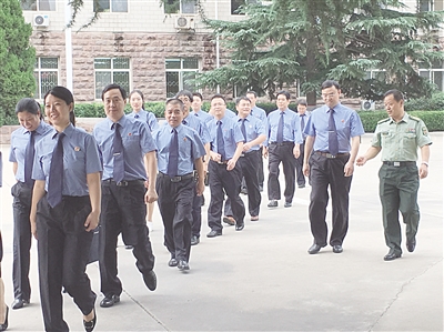 22日下午2时30分,省检察院办公室党支部16名党员同志,在任国强的带领下,着装规范,队列整齐,一路徒步从省检察院走到石家庄军事检察院。姚罗灿首先陪同参观该院全面建设情况。档案管理、荣誉展室、楼宇文化等都给大家留下了深刻的印象。20分钟的纪实片,让大家对石家庄军事检察院的建设情况有了更进一步的了解。
