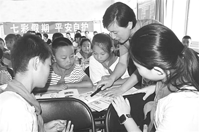 唐山市丰润区人民检察院携手区委政法委、团区委、区教育局工作人员,于暑假期间走进欣园社区、唐车社区和静园社区,创新开展了“益童行 暑假1+1”公益课堂活动,通过学好一节“平安自护课”、观看一场青少年“自护教育”公益电影的形式,让近200名少年儿童及家长在关爱互动的活动中共同学习、共同面对、共同受益。 图为检察人员在向孩子们讲解平安自护知识。 雷秀丽 摄影报道