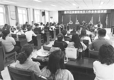 在延伸检察服务过程中,新华区检察院力戒形式主义和官僚主义,主动转变作风。为切实提高履职能力,增强为基层群众服务的本领,8月26日,该院在道东办事处华油社区举办了新华区检察联络员工作业务培训班。本次培训班邀请市检察院第九检察部检察官庄后胜和区检察院民行科检察官徐丽静为70余名检察联络员授课。此后,根据大家在工作中遇到的实际问题,还经常组织一些多样性的业务培训活动,做到群众有反映快回复、有诉求快到场、有困难真帮助,以让民众看得见、感受得到的工作实效,不断提升群众满意度。在辖区小赵庄乡唐庄子、赵官屯等村,过去有一些不规范的垃圾存放点,因清运管理不到位,给居民生活带来一定影响。接到当地联络员提供的信息后,该院立即组织控申、民行等部门干警现场进行督导协调,仅一周时间当地有关部门就进行了清理改造,受到群众的赞誉。辖区内道东邮政小区是多年的老旧小区,因管理不善,小区内私搭乱建达70余处,而在泰和世家小区附近,有人用建筑垃圾填埋河道……这些公益诉讼案件线索很快通过联络员们反馈上来。新华区检察院闻讯而动,当即组织干警进行现场查证,依法向新华区城管局、水务局等单位发出检察建议。目前,相关单位正在对上述问题进行逐项整改。“这些过去没人管的事,检察院帮俺们解决了。”居民们高兴地说。
