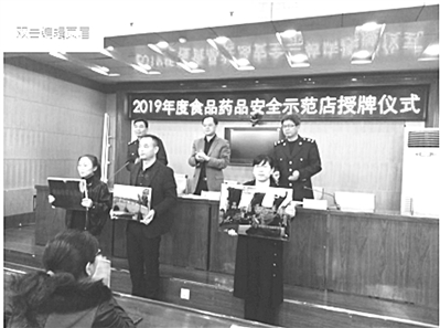 新乐市委、市政府高度重视食品药品安全工作,将打造食品药品安全示范店列入新乐市政府为民办实事利民惠民20项民心工程。新乐市市场监督管理局全力打造30家食品药品安全示范店,并加强对示范店的日常监管,巩固和提升示范创建效果,推进全市食品药品安全水平再提升。图为该局举办食品药品安全示范店授牌仪式。 杜光禄 谢敏辉 摄