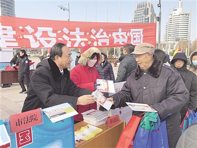 12月4日,秦皇岛市委宣传部、市司法局、市法宣办联合在秦皇岛市人民广场举行了国家宪法日集中宣传活动,市、区80多家单位参加了此次活动。在活动现场,各单位通过悬挂横幅、标语,摆放展台、展牌,发放宣传资料等形式,向群众普及宪法知识。与此同时,秦皇岛市法治文艺宣传队进行了文艺演出,精彩的节目赢得观众的阵阵掌声。图为宣传活动现场。 本报记者 刘波 摄