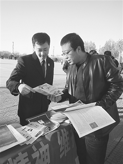 12月4日,河间市人民检察院在公园广场举办了国家宪法日宣传活动。检察干警们以悬挂横幅、发放资料、提供咨询等方式,向群众有针对性地宣传宪法内容、检察机关的职责职能、常用的法律法规知识等,并围绕防范和打击非法集资、扫黑除恶专项斗争、深化公益诉讼、检察便民服务、法律援助等工作进行了释法说理,教育引导广大群众学法、懂法、守法、用法。图为检察干警接受咨询。