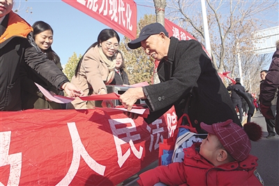 12月4日,衡水市中级人民法院组织干警参加在市区人民广场开展的国家宪法日集中宣传活动。他们通过发放法律宣传资料、展出法治宣传图片和展板、接受群众现场咨询等多种形式开展法治宣传,为推进全市治理体系和治理能力现代化营造了浓厚的法治氛围。 闫寒 张贺 摄